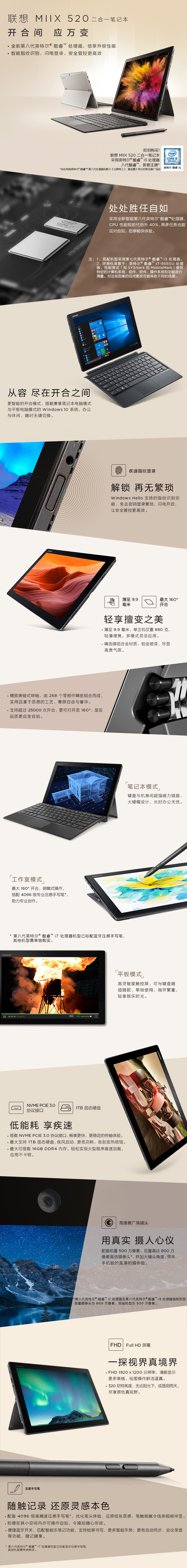 联想 Miix520 12.2英寸二合一平板电脑控笔记本(i5-8250U/4G内存/128G固态/WIN10-H)含报警支架+Miix蓝牙触控笔+Miix520保护套+JBLJembe小音箱