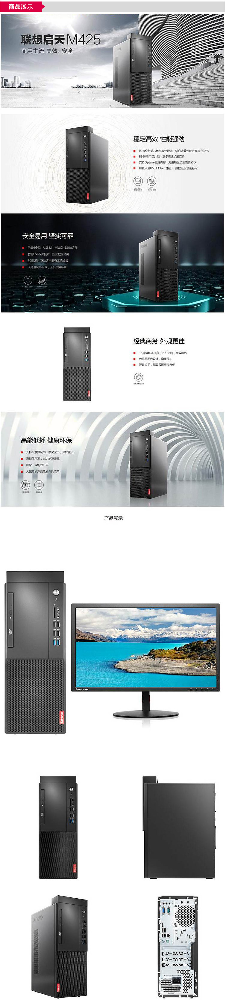 联想启天M425台式电脑(I3-8100/4G内存/1TB硬盘/DVDRW/Win10-H/21.5英寸)